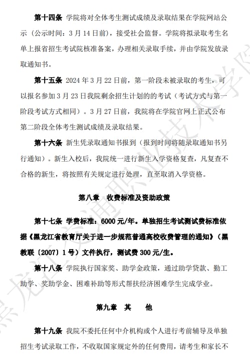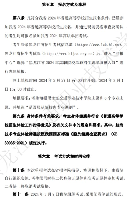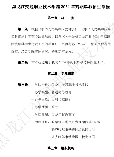 黑龙江交通职业技术学院2024年高职单独招生章程
